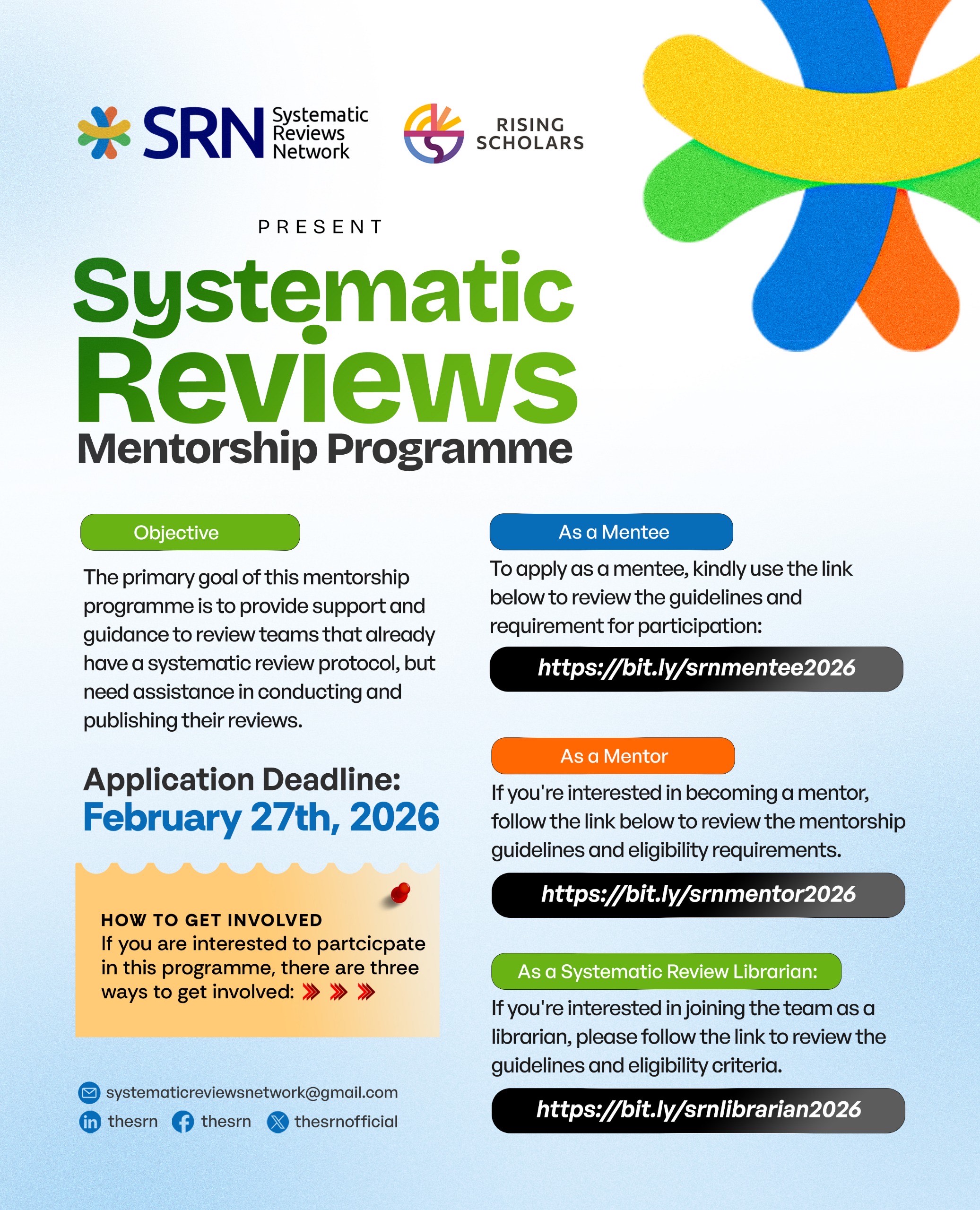 To apply as a mentee, kindly use the link below to review the guidelines and requirement for participation: https://bit.ly/srnmentee2026